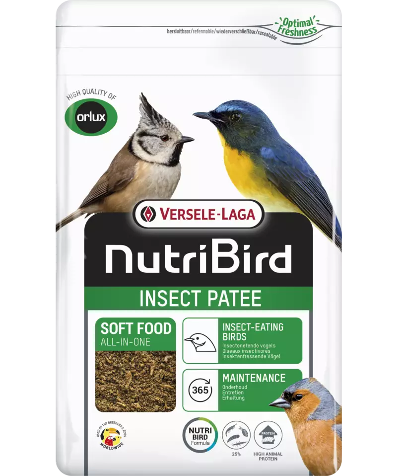 Tasapainoinen täysrehu kaikille hyönteisiä syöville linnuille. Sisältää eläinproteiinia ja vähintään 25 % selkärangattomia.