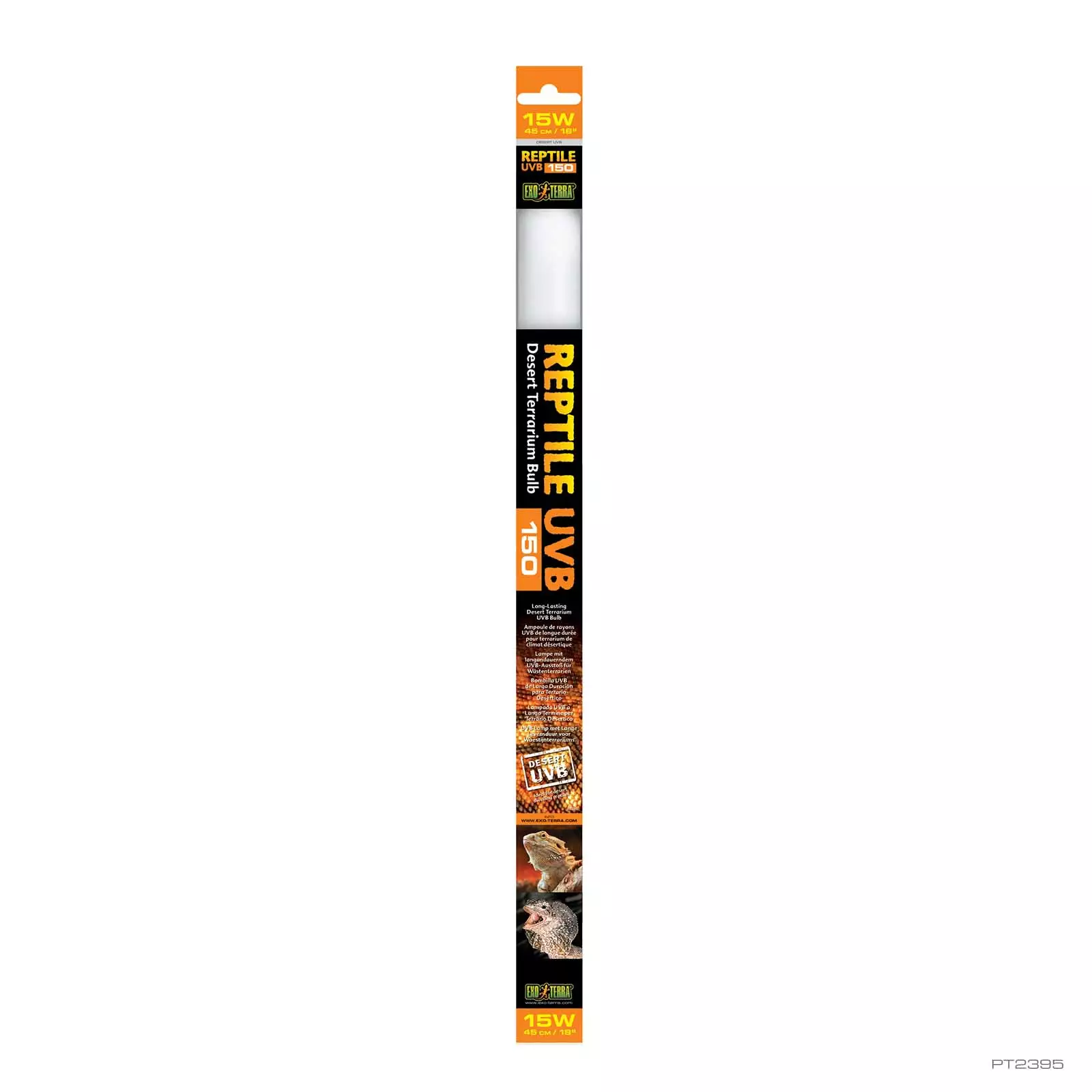 Exo Terra Reptile UVB150 -lampulla on erittäin korkea UVB-tuotto, joka vastaa aavikkoalueiden luonnonvaloa. Aavikoilla auringon säteily on voimakkaampaa, joten aavikkoalueiden matelijat altistuvat UV-säteilylle enemmän kuin muut matelijat. Lamppu sopii myös terraarioihin, joissa on tiheä verkkokansi – tiheät kannet voivat estää jopa 50 % UVB-säteilystä. Korkea D3-vitamiinin tuotanto auttaa kalsiumin imeytymisessä ja ehkäisee aineenvaihduntasairauksia. Pidemmät lamppumallit voidaan sijoittaa usean terraarion ylle.