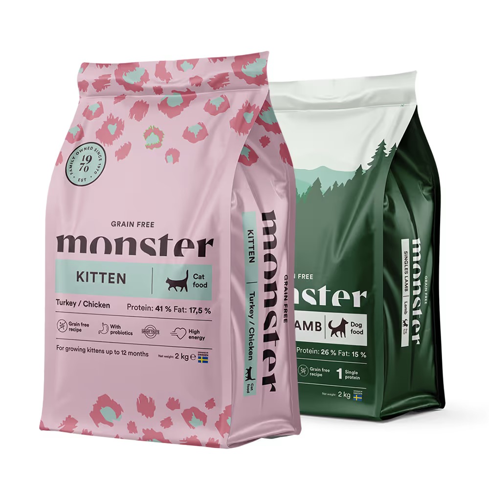 Ruotsalainen Monster pet food tarjoaa huippulaatuista koiranruokaa ja kissanruokaa, jossa aito liha on aina ykkösraaka-aineena. Nämä gluteenittomat ja viljattomat lemmikinruoat on kehitetty erityisesti pohjoismaisiin oloihin sopiviksi.