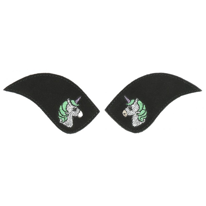 Badges Unicorn musta/hopea My Primera Koristeelliset itsekiinnittyvät tarramerkit EQUITHÈME "My Primera" -ratsastussaappaisiin. Myydään pareittain