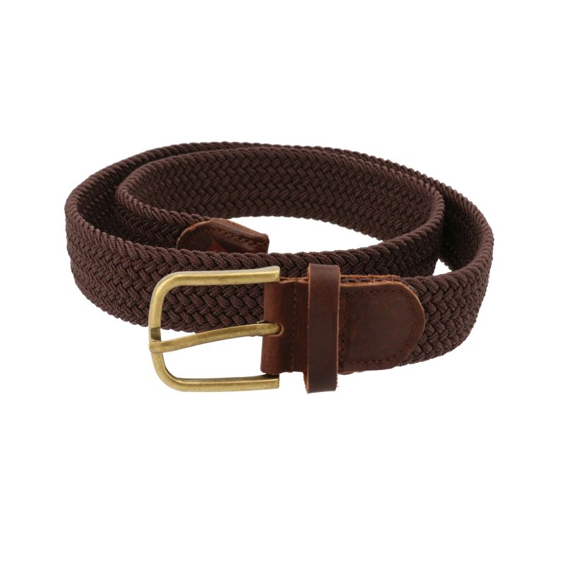 Elastinen letitetty vyö nahkaisilla yksityiskohdilla. Solki jäljittelee vanhaa messinkiä.