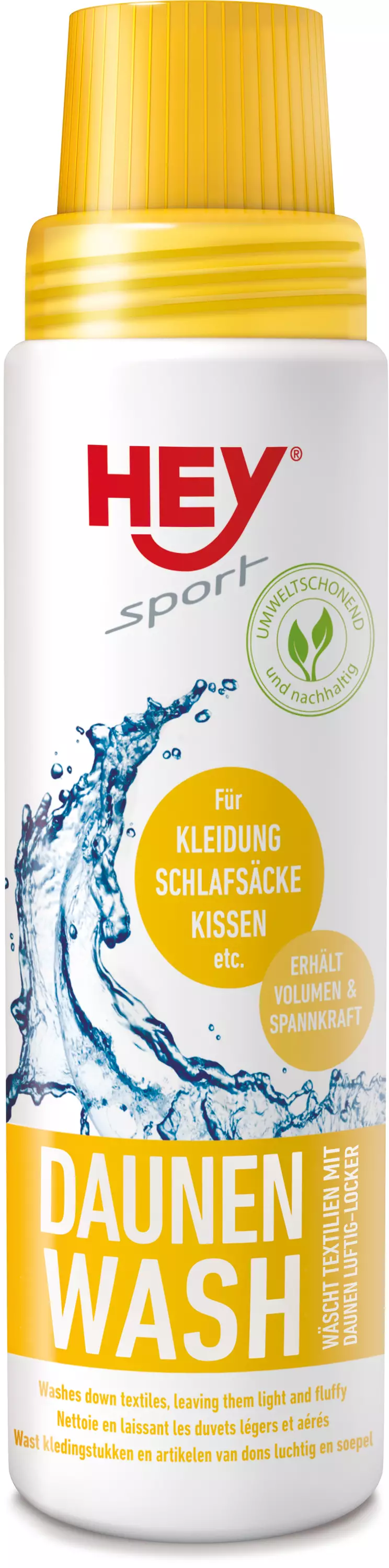 Hey Sport Down Wash on erikoispesuaine untuva tekstiileille. Pesee tekstiilit ilmaviksi ja säilyttää untuvan alkuperäiset ominaisuudet. Sopii vaatteiden, makuupussien, tyynyjen jne. pesuun. Ei haalista värejä.