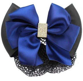 Upea, kaksivärinen Jasmin hiusrusetti, keskellä viisi riviä pieniä kristalleja. Hiusverkko musta.
