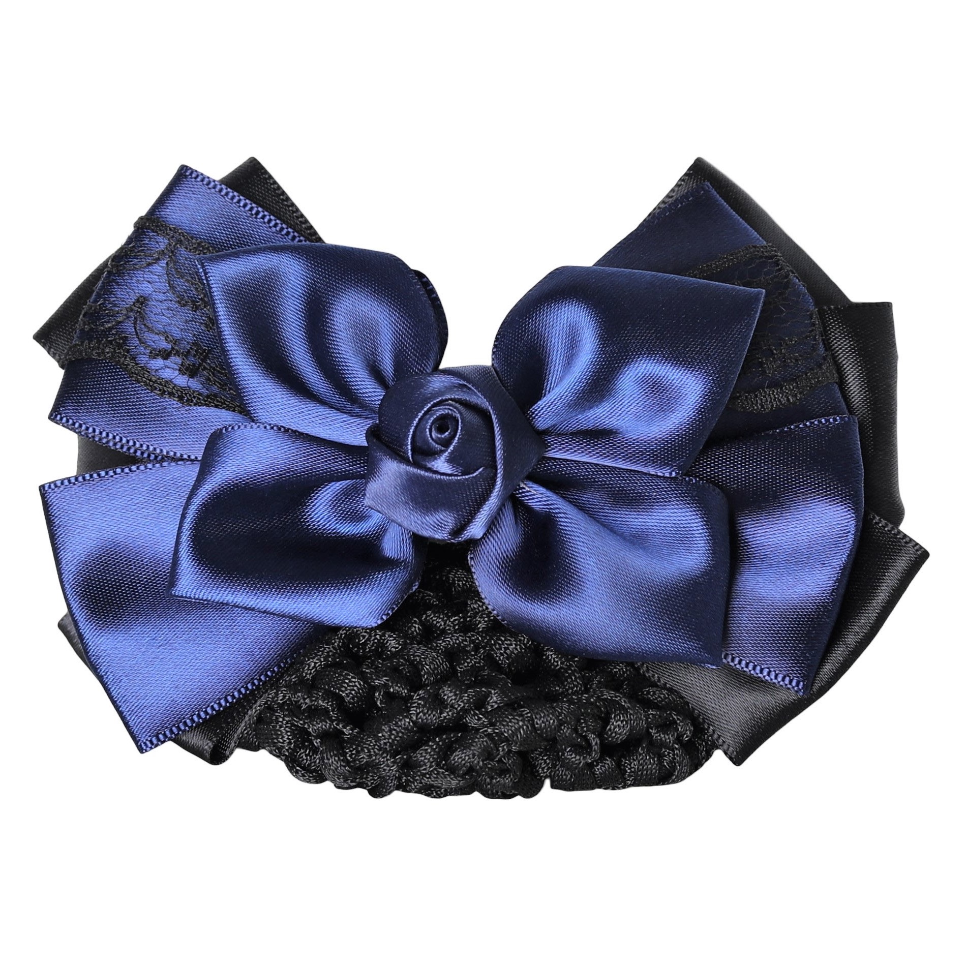 Upea, kiiltävä rusetti satiinista, mukana mustaa pitsiä. Hiusverkko musta.