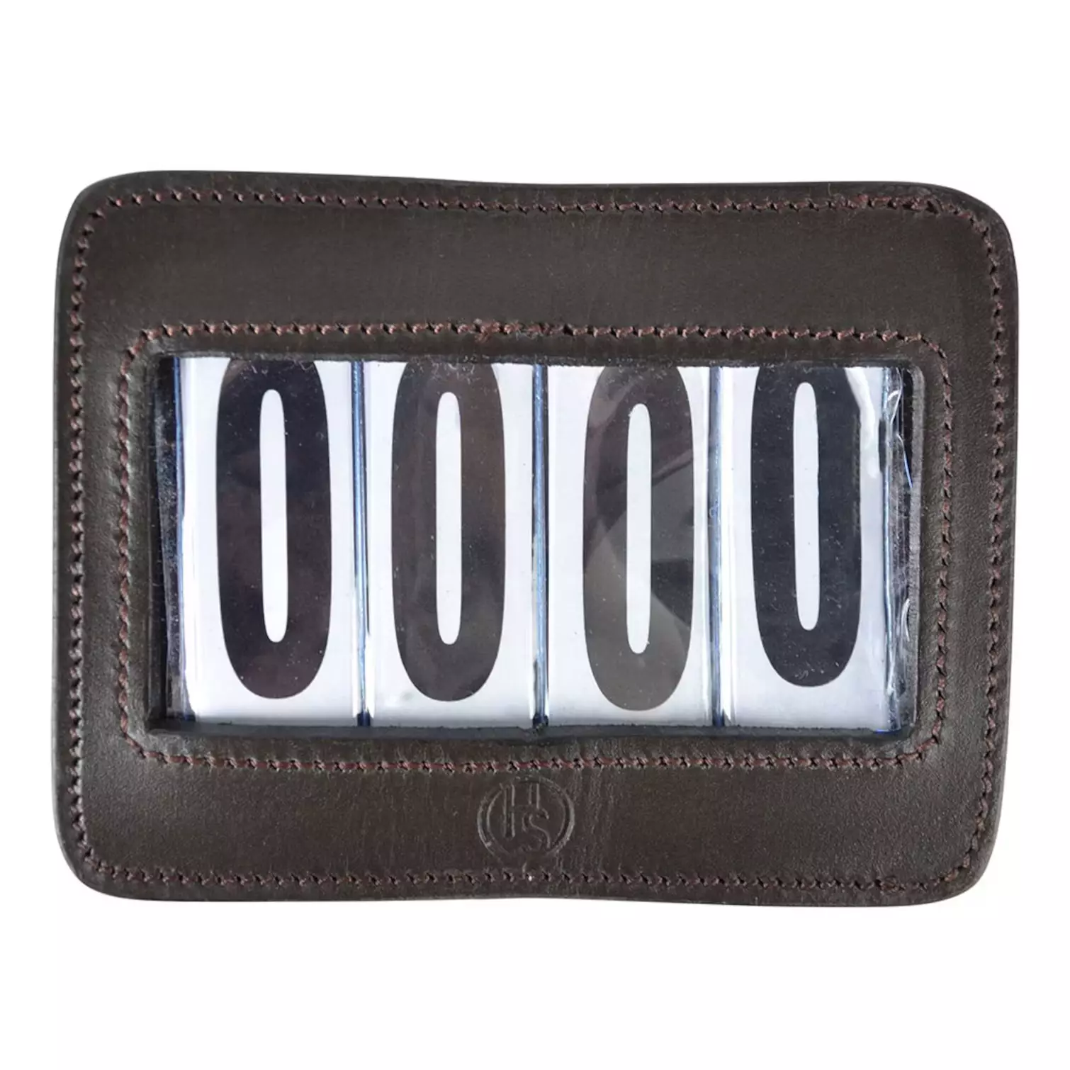Nummerlapp / tävlingsnummer med fyra siffror, tillverkad av veganskt läder. Kan fästas både på ett träns, på sadeln eller på schabraket. Säljes komplett med utbytbara siffror 1-9, som är lätta att byta.