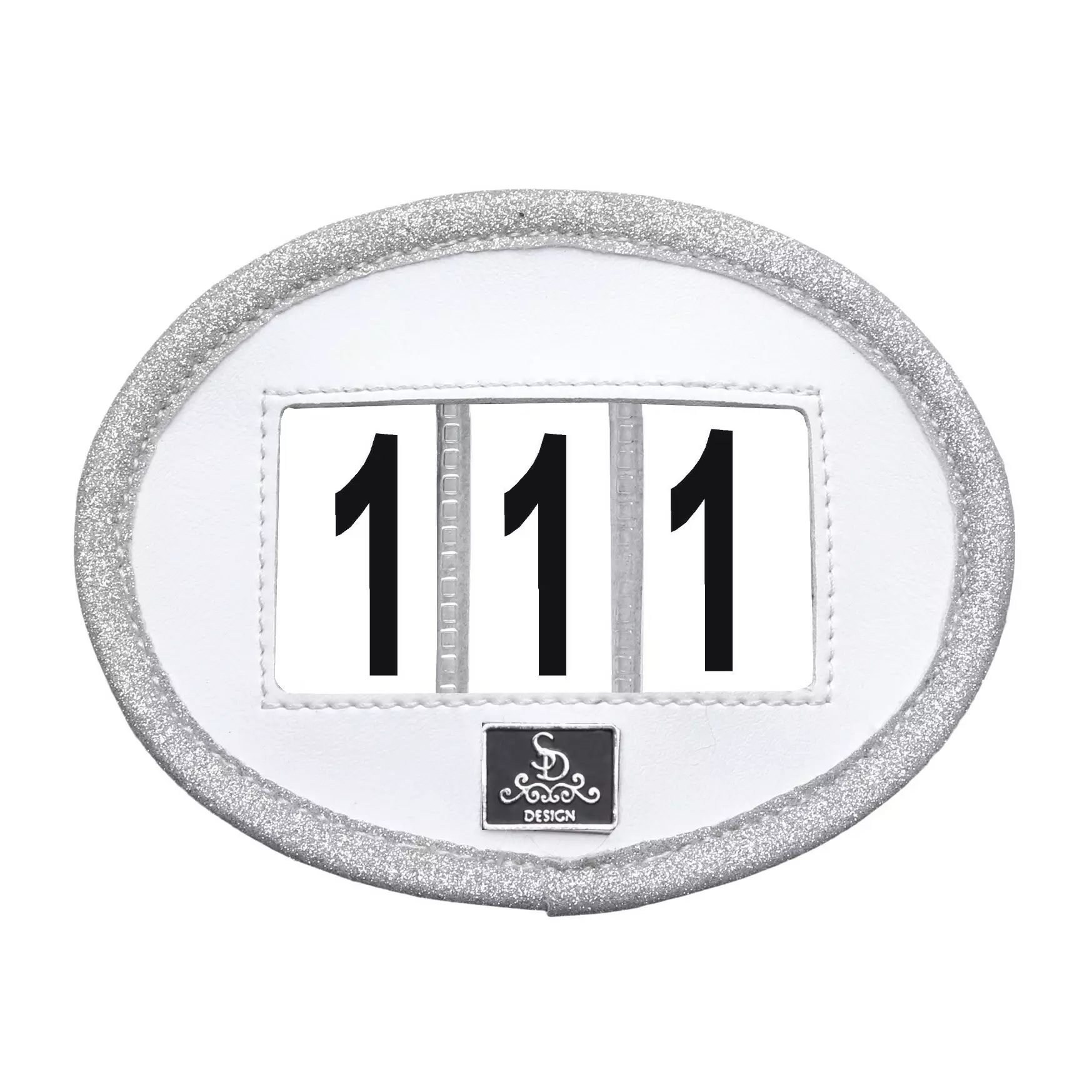 SD® Numbers holder. Vegan leather. White with glitter