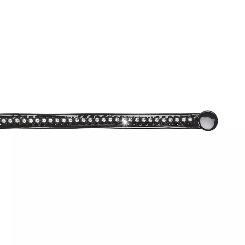 Kiiltävästä keinonahasta valmistettu nauha on koristeltu säihkyvin strassikivin, jotka tuovat kypärään eleganttia viimeistelyä. Tyylikäs lisävaruste kiinnittyy helposti neppareilla, joten voit muuttaa kypärän ulkonäköä nopeasti ja vaivattomasti - tilanteen ja tyylin mukaan.