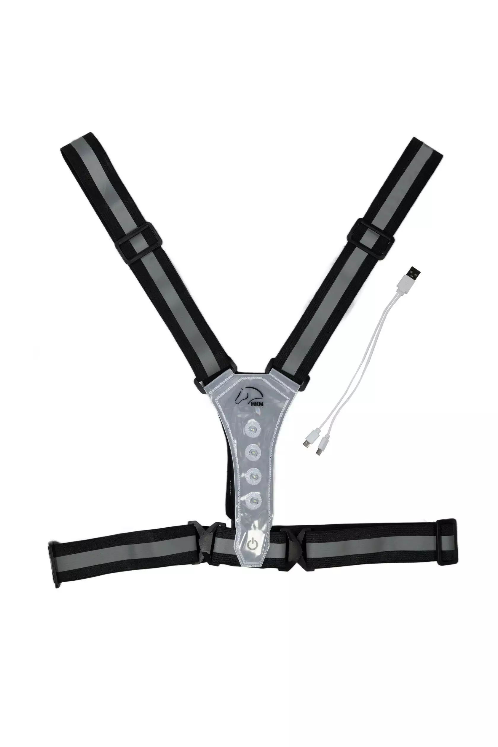Ladattava led-liivi näkyy pimeällä loistavasti. Edessä ja takana eriväriset ledit. Hyvät säätömahdollisuudet.