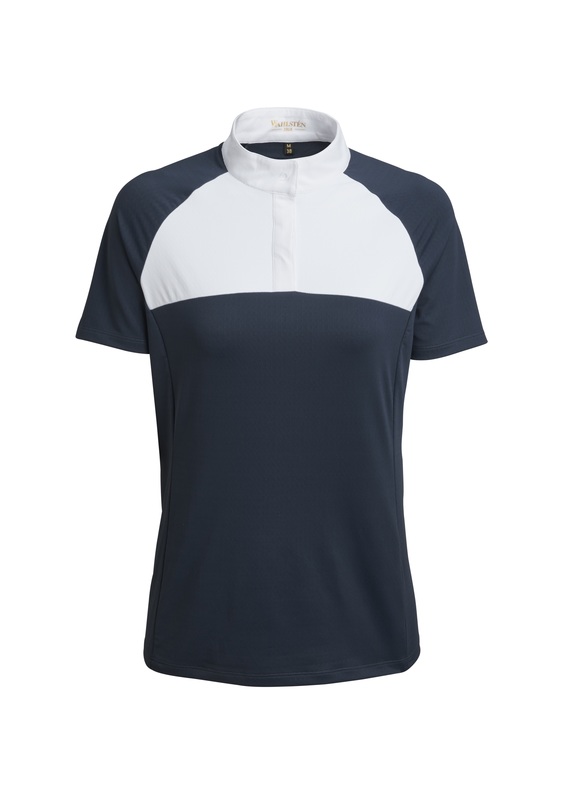 Kilpailupaidan napitus edessä mahdollistaa kauluksen pidon ylhäällä kisoissa ja alhaalla treenatessa. Paidan kuviollinen materiaali tuo mielenkiintoa ja omaa tekniset ominaisuudet: UV-suoja, kosteuden siirto pois iholta, antibakteerinen ominaisuus, hengittävä sekä erittäin joustava. Klassinen väritys tummansinen, jossa valkoinen kaulusosa.