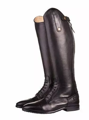 Hyvin istuvat ratsastussaappaat, takana vetoketju ja edessä lyhyt nauhoitus. Päällinen aitoa nahkaa.