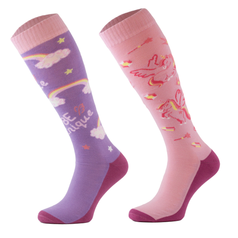 Kaksi erilaista sukkaa yhteensopivana parina ja vahvistetulla pohjalla.