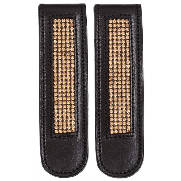 Mausta saappaasi näillä kauniilla koristeilla, joka on valmistettu mustasta nahasta ja kultaisista kristalleista.
