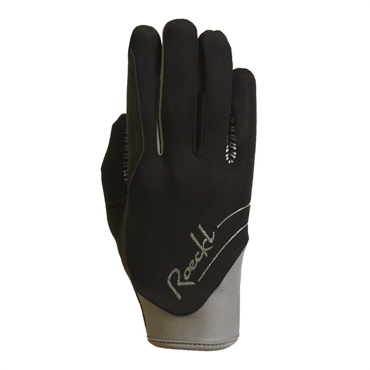 Roecklilta trendikäs käsine modernille nuorelle ratsastajalle. Käsine on valmistettu Durasense-materiaalista, joka on kestävän pehmeä ja mokkamainen synteettinen materiaali. Kämmenessä silikonigrippi, joka takaa täydellisen otteen ohjaksista. Päällä kimalteleva Roeckl-logo, joka on yhteensopiva silikonigripin ja lycra-mansetin kanssa. Käsineessä on myös Roecklin ainutlaatuinen Comfort Cut, joka tarjoaa erittäin mukavan istuvuuden ja paljon joustavuutta.