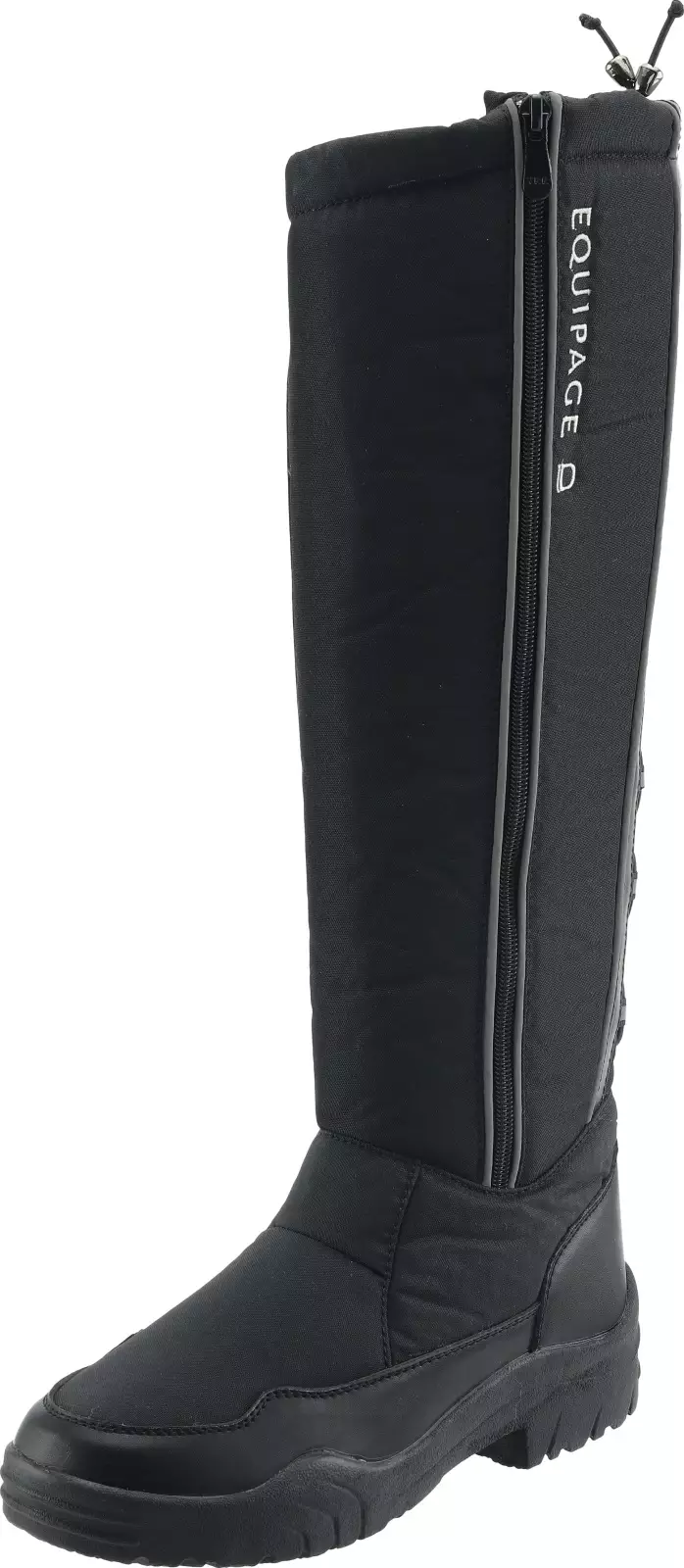 Talviratsastussaappaat tekstiilistä lämpimällä synteettivuorella ja maastopohjilla, jotka sopivat ratsastukseen. Saappaissa on ulkosivulla vetoketju sekä säädettävä pohkeenleveys joustavalla nyörityksellä, jossa on stopperit ja solki takana. Sivujen heijastavat tereet parantavat näkyvyyttä pimeällä.