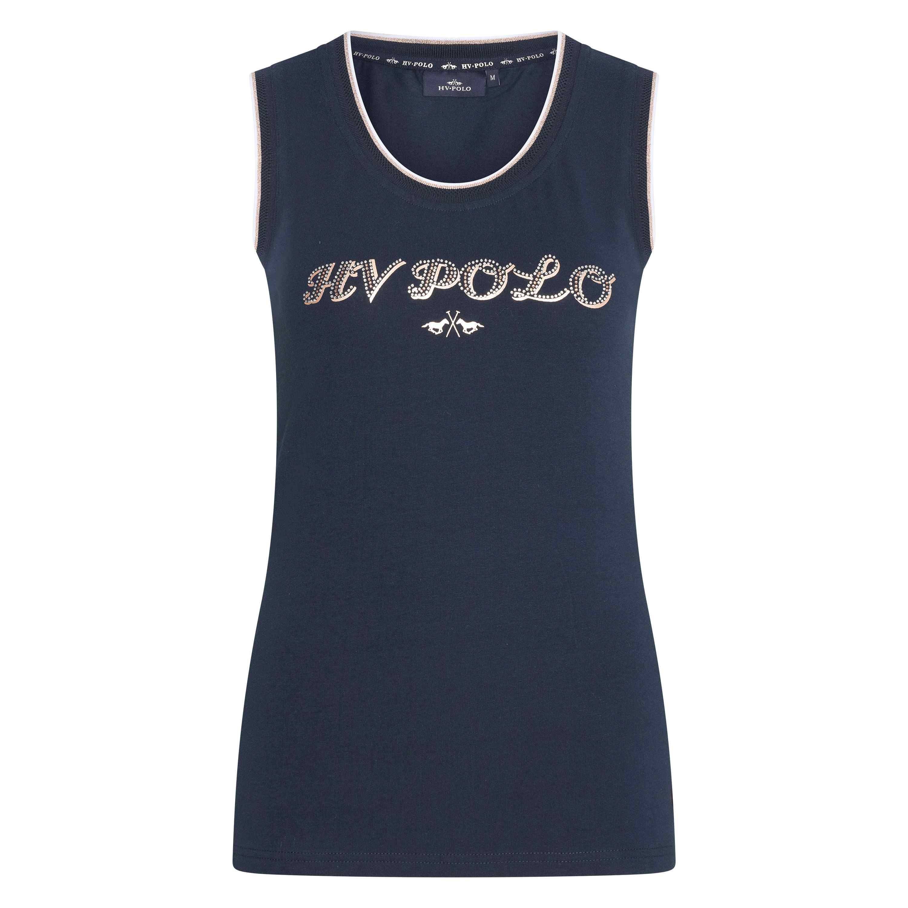 Tyylikäs hihaton toppi, koristellut hihansuut sekä kaulaaukko. Edessä strassein koristeltu HV Polo -logo tekstillä.