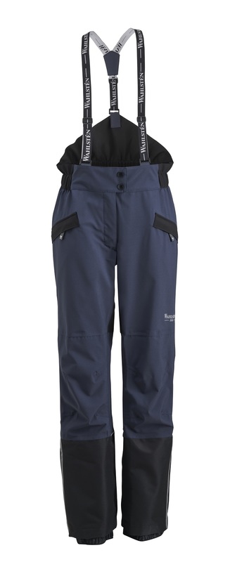 Vedenpitävä kangas ja teipatut saumat. Vahvistetut lahkeensuut sekä istuinosa. Takaa korkeavyötäröinen housu, jossa vetoketjulliset taskut. Lahkeensuissa lumilukot, irroitettavat jalkalenkit sekä vetoketjut helpottaa kenkien pukemista. Henkselit ovat irroitettavat sekä säädettävät. Heijastavat tereet. Liukas nylon vuori. Kankaan tekniset arvot 10 000 mm / 5 000 mvp (vesipilari/hengittävyys).