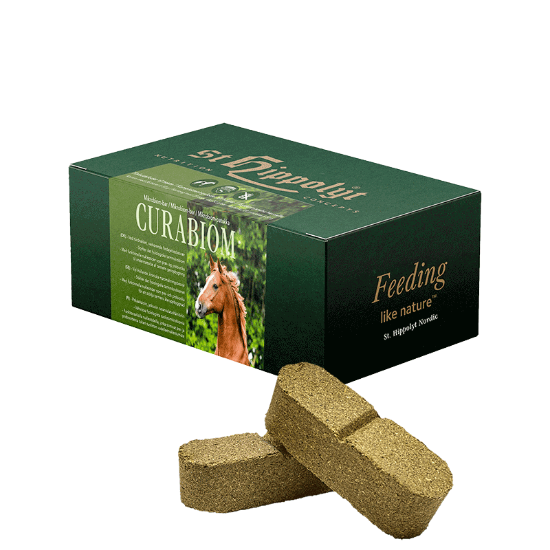 CuraBiom – suolistomikrobiomibaari on viljaton ja sillä on erittäin alhainen tärkkelys- ja sokeripitoisuus, mikä tekee siitä sopivan minkä tahansa tyyppiselle hevoselle.