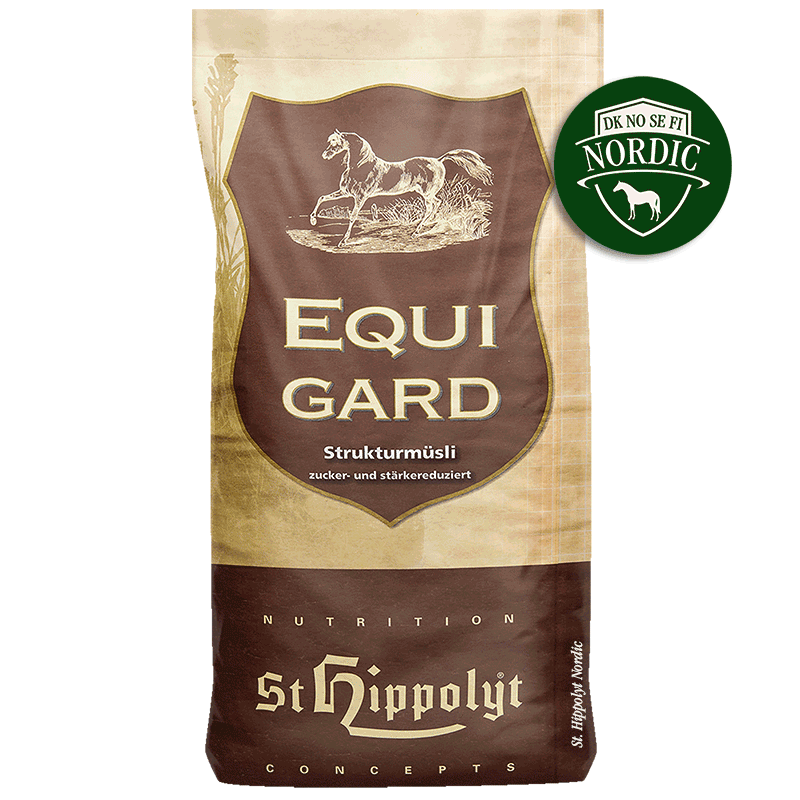Tutkimustulokset osoittavat, että ei-rakenteelliset hiilihydraatit, kuten viljatärkkelys ja sokeri, on pidettävä alhaisella tasolla hevosen kärsiessä aineenvaihdunnan haasteista. EquiGard sisältää n. 80 % vähemmän tärkkelystä ja sokeria kuin kaura ja sen energiapitoisuus on alhainen. EquiGard soveltuu tästä syystä erityisen hyvin vähän energiaa sisältäväksi ravinnoksi riskiryhmään kuuluville hevosille sekä hevosille, jotka kärsivät jo entuudestaan aineenvaihduntaongelmista. Kovalle kuormitukselle altistuvien sekä aineenvaihduntahaasteista kärsivien laihojen hevosten suuremmat energiantarpeet tulisi täyttää ensisijaisesti luonnollisilla öljyillä, öljysiemenillä ja käymiskykyisillä kuiduilla. Tästä syystä suosittelemme Struktur-E:n ja HippoLinolin/Leinölin yhdistelmää
