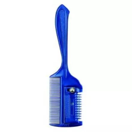 Harjakampa ja veitsiterä yhdistelmä. Erinomainen kun harjaa halutaan harventaa tai kun ei haluta täysin suoraksi leikattua harjaa.