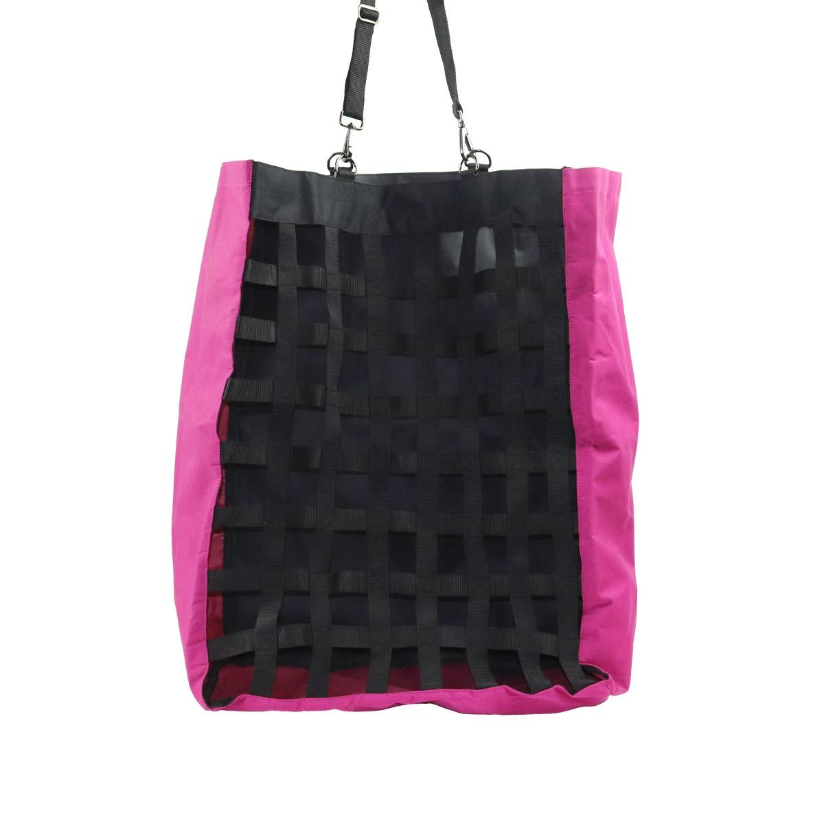 Slowfeeder heinäkassi on hyvä vaihtoehto hidastamaan hevosen syömistä niin tallissa kuin kuljetuksen aikana. Heinäkassin etuosan verkotus on valmistettu 25 mm leveistä vahvoista nailonnauhoista. Verkon silmäkoko on n. 4 x 5 cm. Heinäkassin yläosassa on neljä D-rengasta, joista sen voi kiinnittää roikkumaan. Kaksi säädettävää kiinnitysnauhaa ovat pikalukkokiinnityksen ansiosta helppoja ja nopeita käyttää.