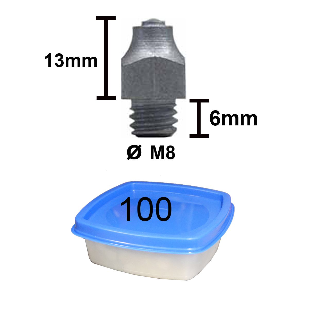 13mm hokit hevosen 6mm paksuun kenkään M8 kierteellä.
