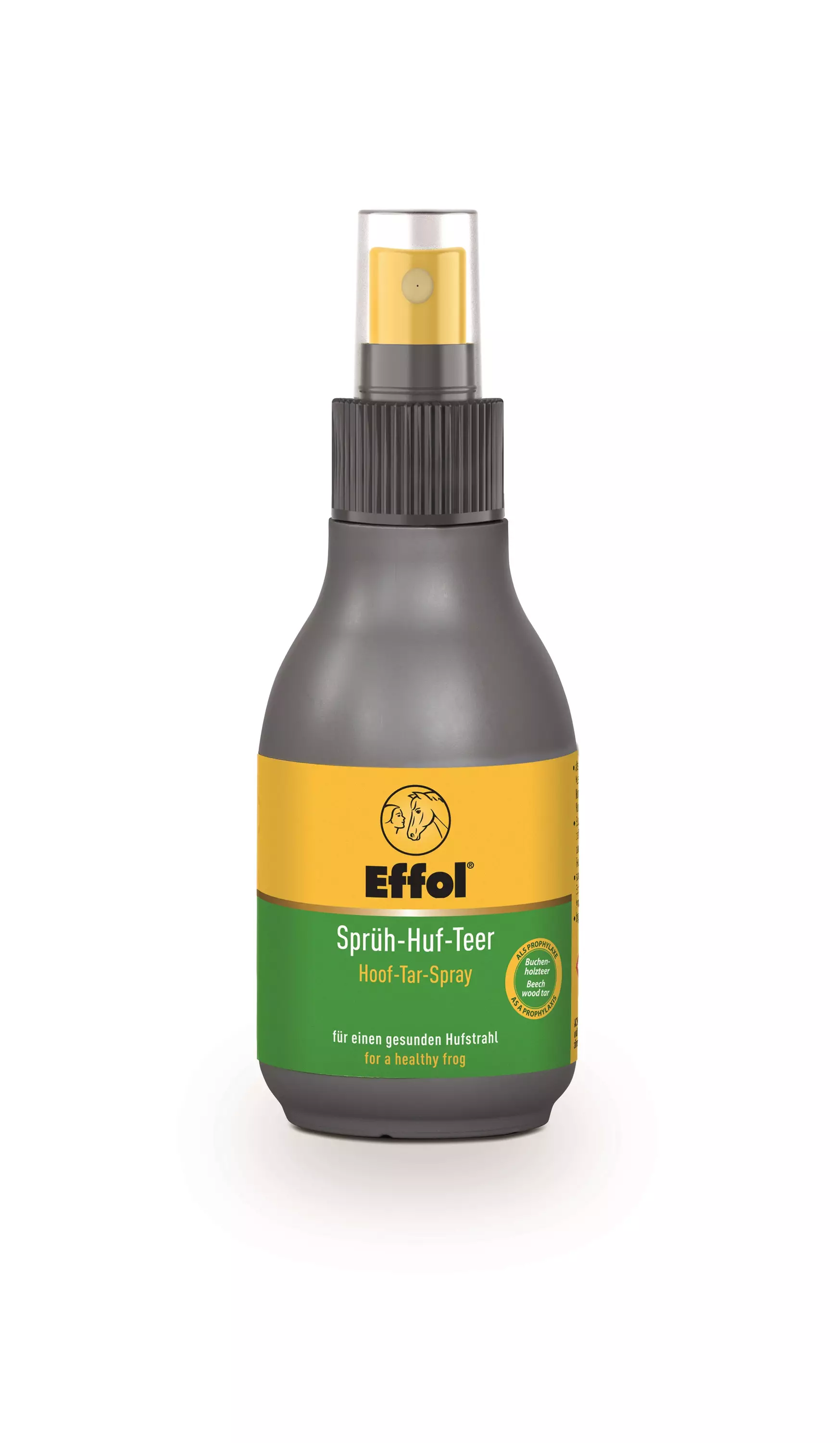 Effol Hoof-Tar är en hovtjära i sprayform, som enkelt kan sprayas på och i hoven. Tjäran tränger djupt in i hoven och ger en långtidsverkande barriär med fukt. Tjäran skyddar hoven och håller den sund. Innehåller 125 ml och det ger upp till 60 sprayningar.