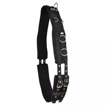 Hansbo Sport juoksutusvyö joka soveltuu mm. ohjasajoon. Kiinteät renkaat selän päällä. Useita säätömahdollisuuksia ja kiinnityslenkkejä.