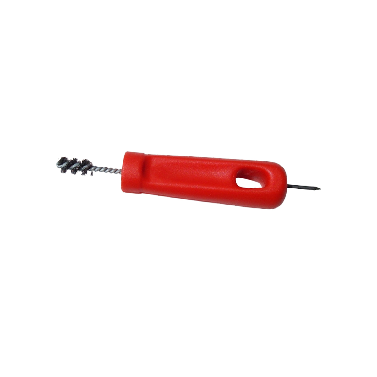 Puhdistusrassi hokinreikiin Metalliharja kahvalla jossa puhdistuspiikki toisessa päässä.