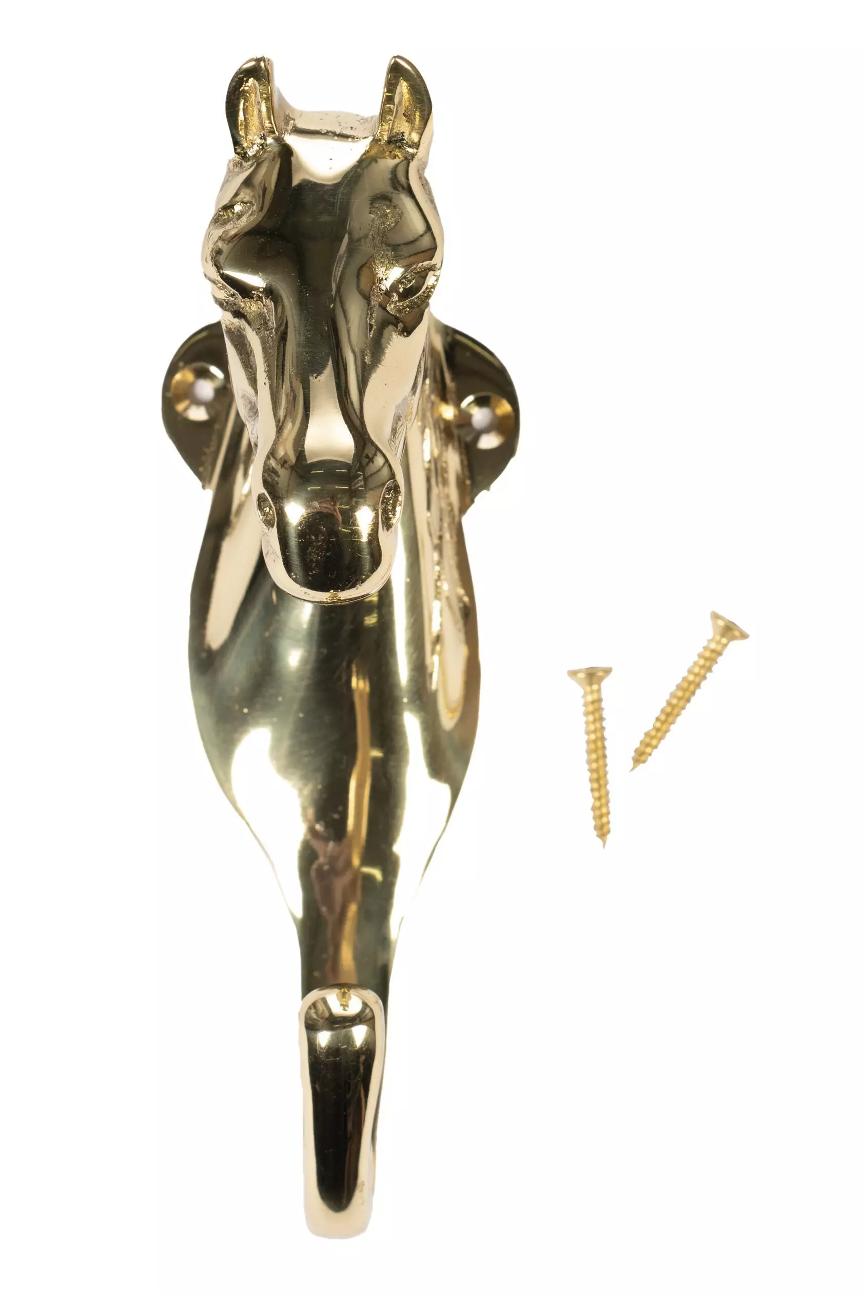 Messinkinen, hevosenpään muotoinen koukkunaulakko sopii kaikenlaiseen säilytykseen ja järjestelyyn.