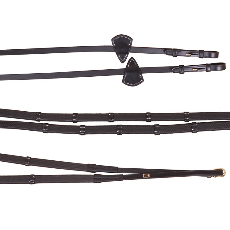 Kumiohjat stoppareilla, laadukasta italialaista nahkaa, messinkisillä soljilla.