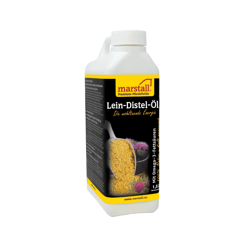 Marstallin Lein-Distel-Öl pellava-ohdakeöljy tuo nopeaa energiaa urheiluhevosille ja raskasta työtä tekeville hevosille. Laadukas kylmäpuristettu öljy on helposti sulavaa ja sisältää monityydyttymättömiä omega-3-rasva- happojen lisäksi myös luonnollista E-vitamiinia.