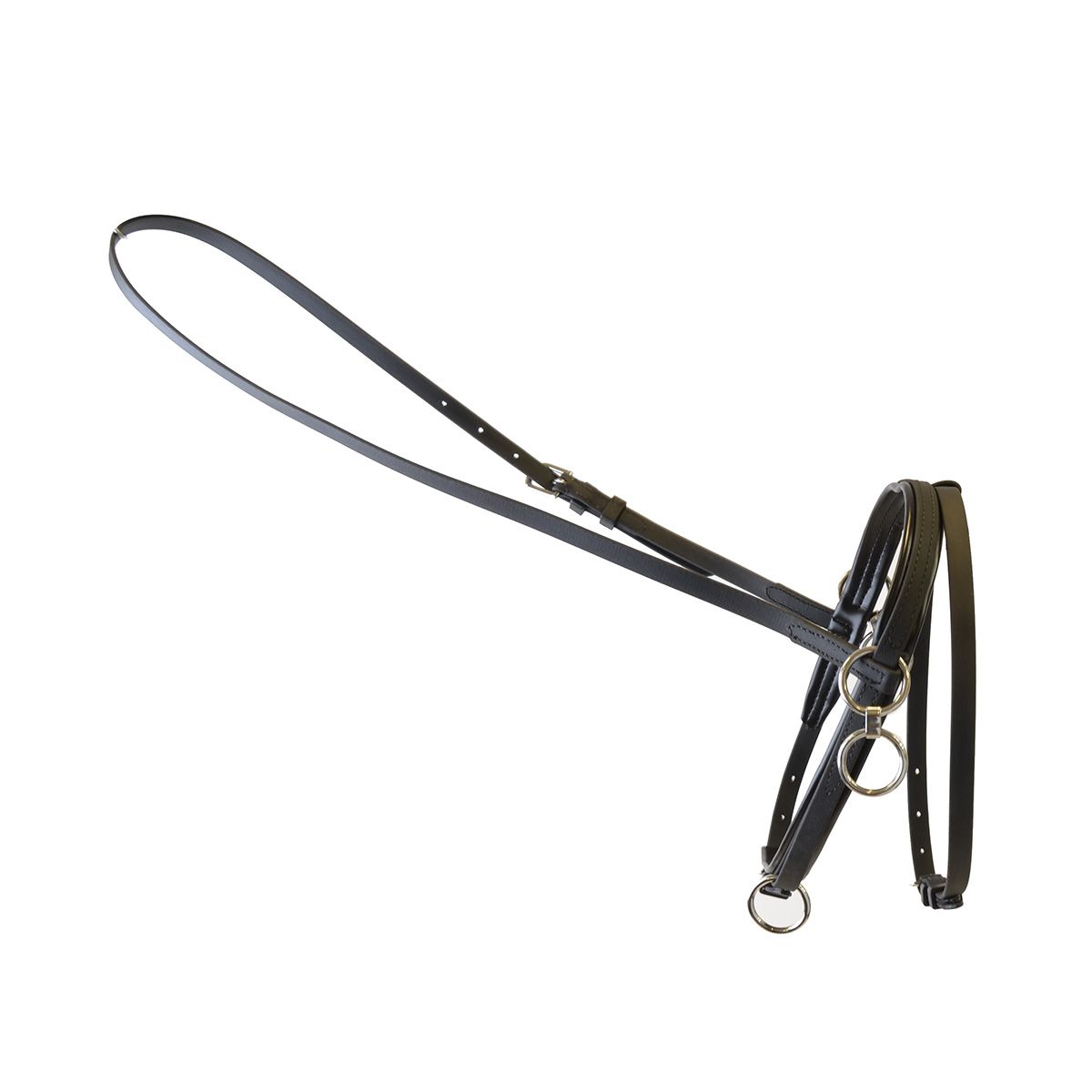 Mustalaisriimun turparemmissä oleviin renkaisiin voi kiinnittää alamartingaalin tai sivuille päätangon.