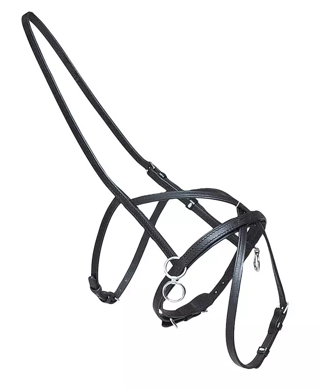 Nahkainen mustalaisriimu luistavalla ristiturparemmillä ja mustalla toppauksella. Kiinnitysrenkailla.
