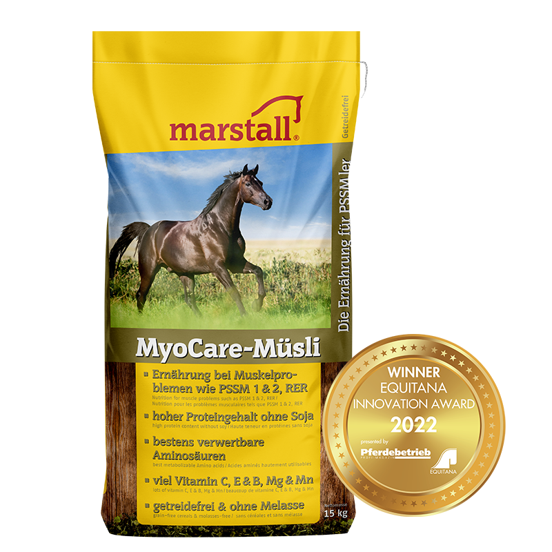 Mysli sisältää vähän tärkkelystä ja sokeria, mutta siinä on runsaasti ohutsuolessa sulavaa proteiinia ja runsaasti E-vitamiinia sekä mangaania, seleeniä ja öljyä. Tällä tavalla Marstall MyoCare -mysli edistää merkittävästi perinnöllisistä lihasongelmista kärsivien hevosten hyvinvointia. Ohutsuolessa sulavien proteiinien korkea pitoisuus on tärkeää sairastuneille hevosille, jotta heille ei tulisi proteiinivajetta.
