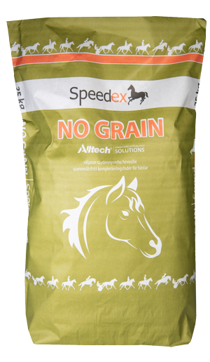 Speedex No Grain on kuitupitoisista raaka-aineista koottu täysrehu. Viherjauho (joka on tehty nurmesta), ja melassileike ovat hevosille maittavia sekä mikrobeille helposti sulatettavia raaka-aineita. Pellavarouhe tuo ruokintaan tärkeitä rasvahappoja.
