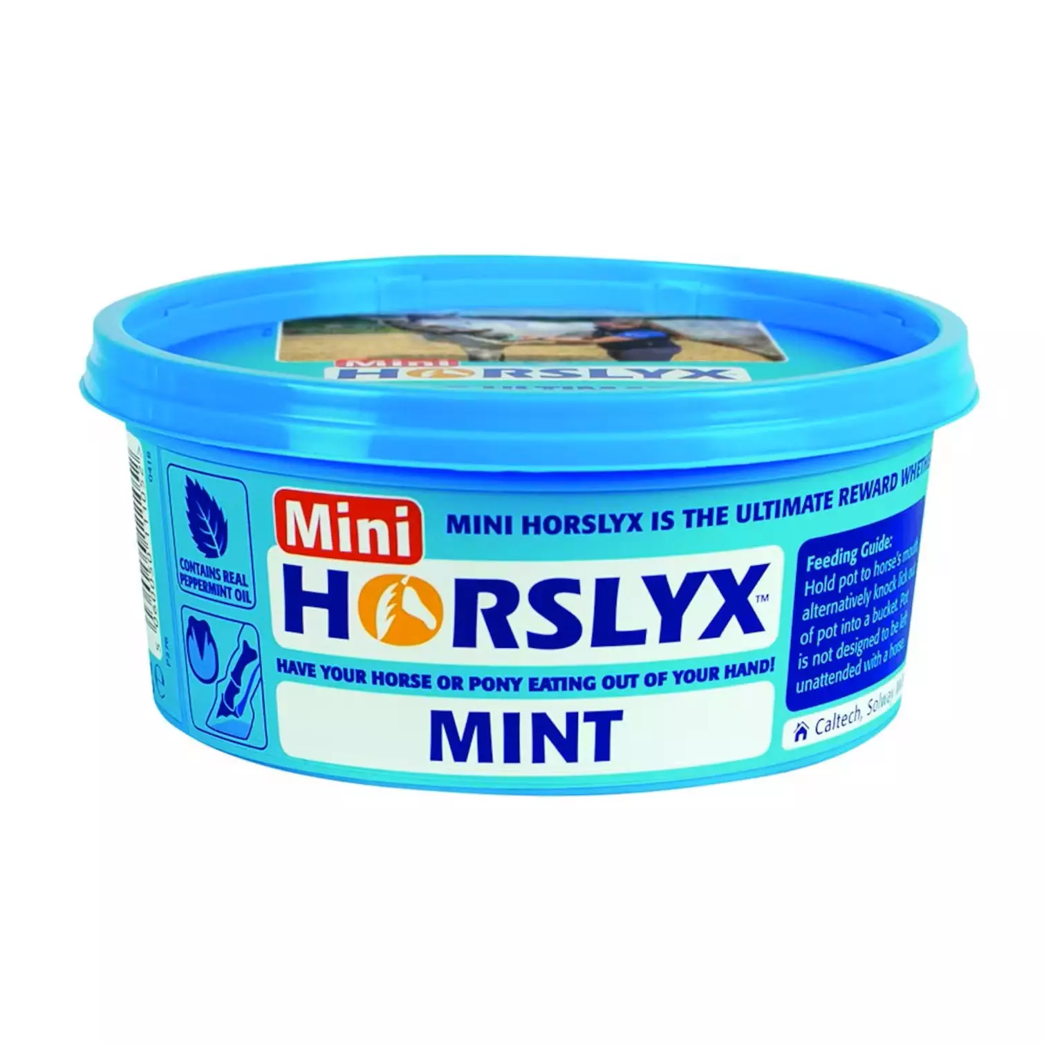 Mini Horslyx är ett bra val för hästägare som vill belöna sin häst eller ponny. Mini Horslyx finns i smakerna Original, Mint, Respiratory (med en dopningsvarning på 96 timmar), Mobility och Pro Digest. Det är en 650 grams ask som är lätt att hålla i handen vid till exempel klippning, skoning, fångande, lastning, stretching vid veterinärbesök osv.