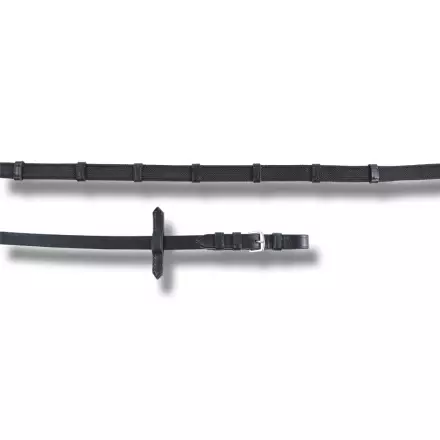 Supergrip-nahkaiset ohjat, leveys 18mm. Ruostumattomasta teräksestä valmistetut soljet.
