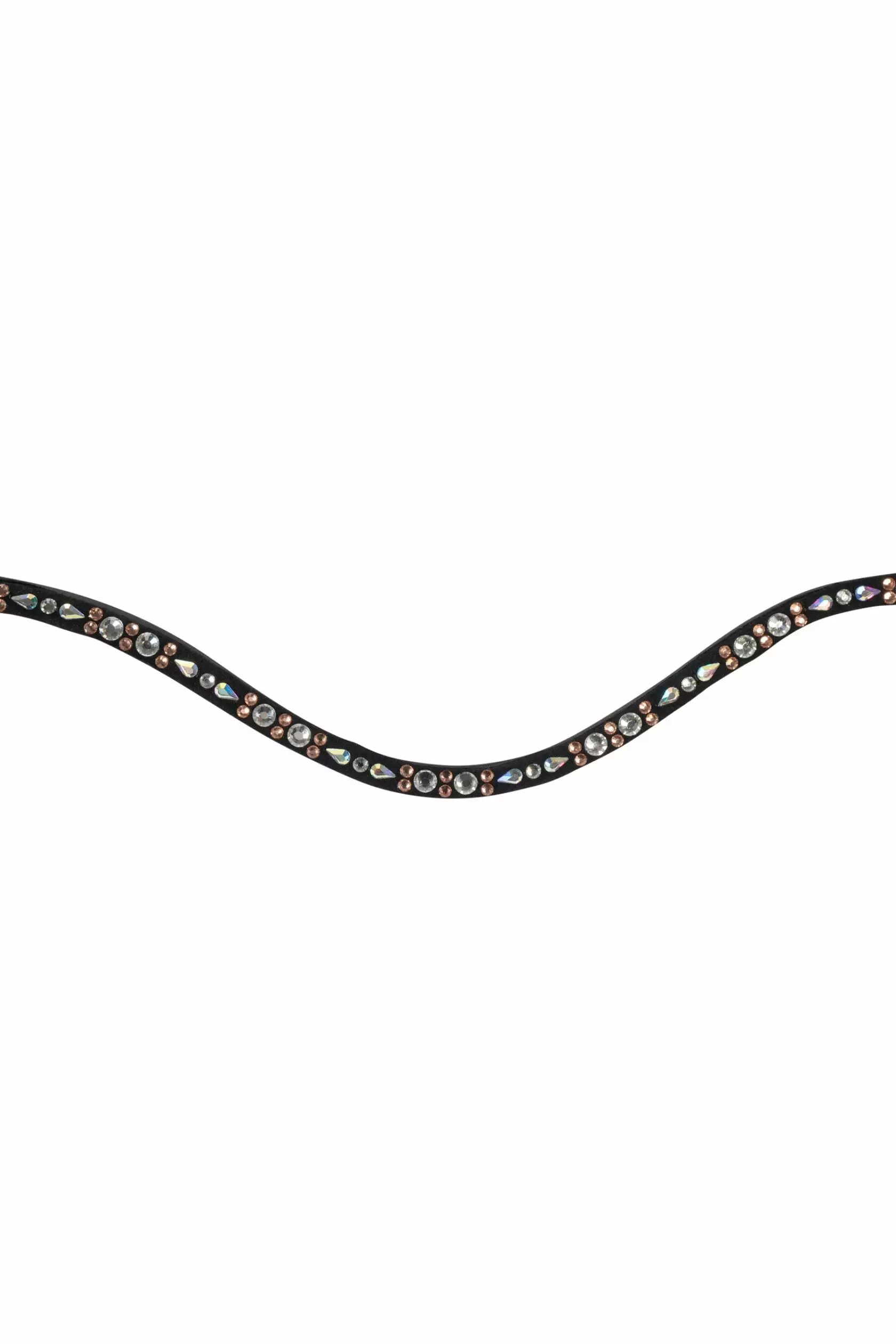 Laadukas U-muotoinen nahkainen otsapanta – kristallikoristeilla. Tyylikäs ja kestävä, laadukkaasta nahasta valmistettu otsapanta, jossa on näyttävät kristallikoristeet. Otsapanta on U-muotoinen, mikä antaa sille kauniin istuvuuden ja korostaa suitsien ilmettä. Käytännölliset painonappikiinnitykset helpottavat otsapannan vaihtamista ja kiinnittämistä nopeasti ilman turhaa säätöä.