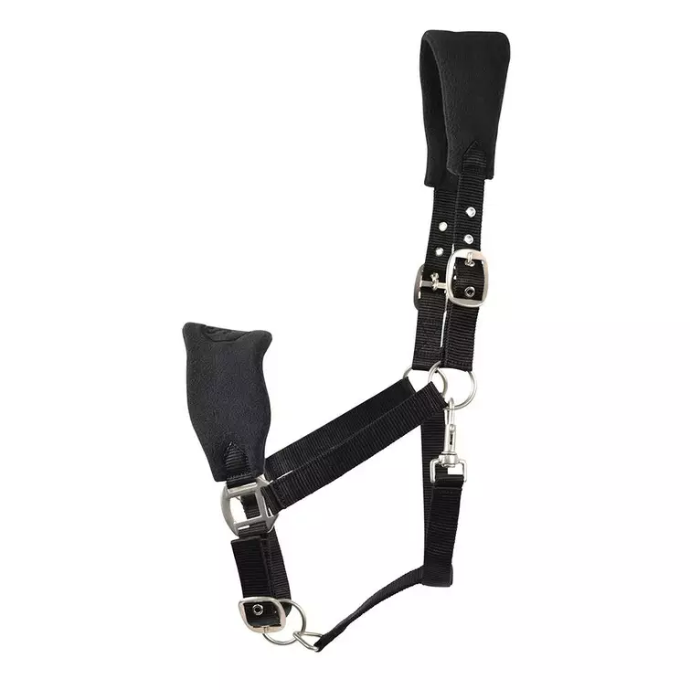 Slitstark mjuk grimma med tryckfördelande fleece. Fleecepaddings med extra stoppning och tryckfördelande egenskaper som ger hästen extra komfort. Justerbar för optimal passform och designad med elegant HS brody på nosen.