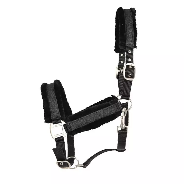 Upea riimu, jossa on kimaltelevat koristeet, valmistettu vahvasta tekstiilistä ja pehmeästä keinoturkiksesta niskassa, turvalla ja sivuosissa. Säädettävä optimaalisen istuvuuden saavuttamiseksi.