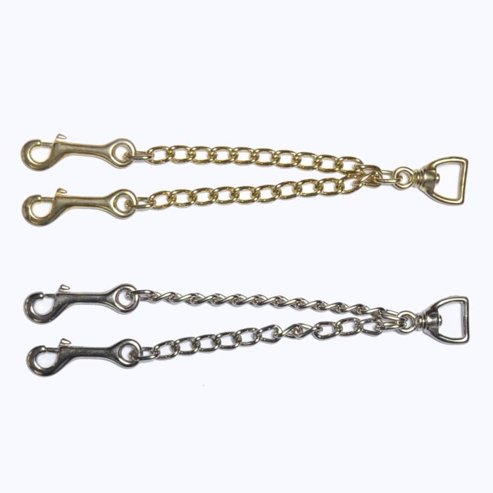 Kaksoisketjulla talutat hevosta helposti kuolaimista. Sopii erityisesti näyttelytaluttimiin. Pituus ketju ja lukko yhteensä n. 30cm.