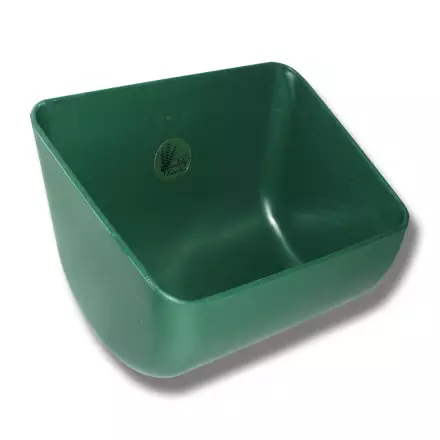 Iskunkestävästä PP-muovista valmistettu ruokinta-astia, joka on todella syvä, jotta vältetään rehuhäviöt. Lisävarusteena on pieni kisko kiinnitettäväksi ruokinta-astian reunaan. Ruokinta-astia on varustettu mahdollisuudella porata pohjatulppa jälkikäteen.
