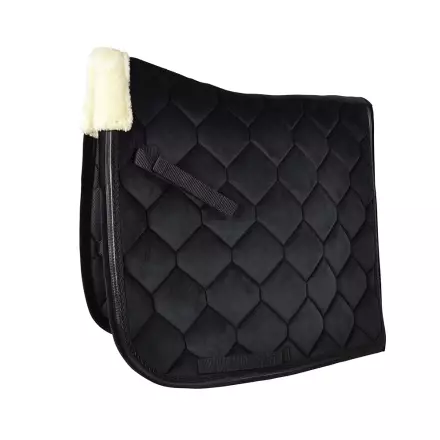 Tyylikkäästi ja ergonomisesti muotoiltu samettihuopa kouluratsastukseen.