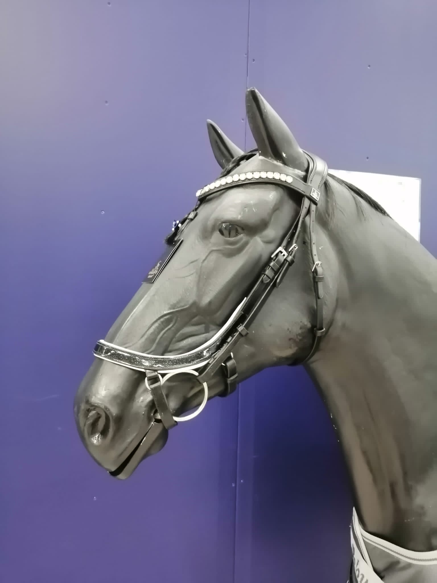 Tyylikäs koristeltu, kaareva otsahihna on valmistettu pehmeästä nahasta ja siinä on kirkkaita, suuria 10 mm:n Rivoli-kiteitä. Nämä takaavat tyypillisen SD-muotoilutyylin ja kimaltelevat ponisi tai hevosesi jokaisessa liikkeessä.