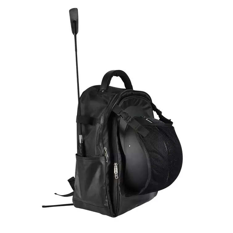 Toiminnallinen reppu säädettävillä, pehmustetuilla olkahihnoilla ja keinonahkaisilla yksityiskohdilla. Ulkoneva verkko-osa kypärän säilytystä varten. Sisäpuolella taskuja ja lokeroita harjojen, suihkepullojen ja tarvikkeiden älykkääseen säilytykseen. Päätilaan on suunniteltu osio suljettavalla sisätaskulla sekä pehmustetulla osalla iPadille tai kannettavalle tietokoneelle. Sivutaskut. Alaosassa vahvikkeet keinonahasta ja napeilla vakauden takaamiseksi.