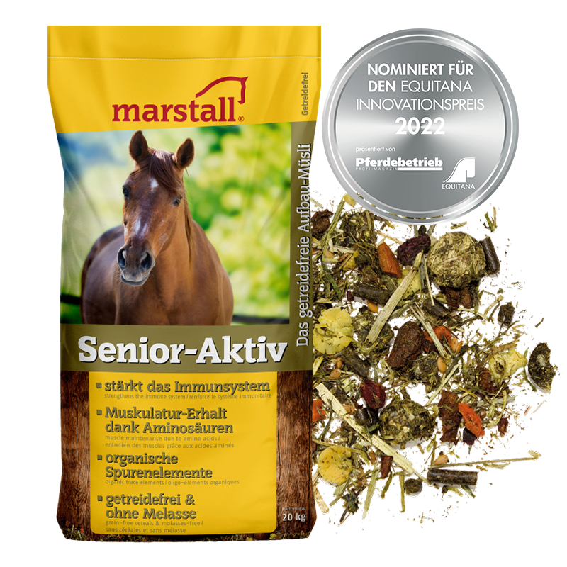 Marstall Senior-Aktiv on viljaton, helposti sulava mysli, joka on räätälöity erityisesti vanhojen hevosten tarpeisiin.
