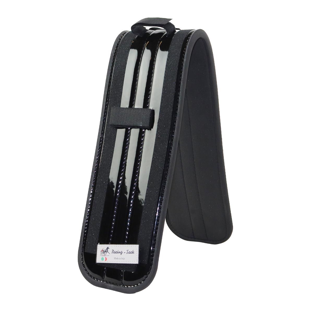 Näyttävä silatyyny ravivaljaisiin kimaltavilla glitter pinnalla. Silapatja on pehmeää synteettistä hevosen omasta lämmöstä muotoutuvaa materiaalia. Päällä reunoilla ja keskellä on kiiltävää mustaa PVC-materiaalia, joka antaa silatyynylle tyylikkään kontrastin. Silapehmuste kiinnitetään kuudella tarranauhalla silan ympärille. Hohda timanttina radalla!