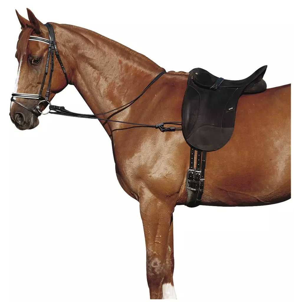 Norton sivuohjat täysin joustavat säädettävät pari musta nämä kiinteät ja suorat apuohjat mahdollistavat alaspäin venyttämisen tai korkean pään asennon, lisäten näin selän lihasten aktiivisuutta. Täysin säädettävä, joten sitä voidaan käyttää turvallisesti sekä juoksuttaessa että ratsastaessa. Erittäin helppokäyttöinen. Kiinnitetään kuolaimen molemmille puolille ja hevosen molemmin puolin satulavyöhön halutulle korkeudelle. Se voidaan myös kiinnittää juoksutusrullaan tai satulavyöhön hevosen vatsan alle.