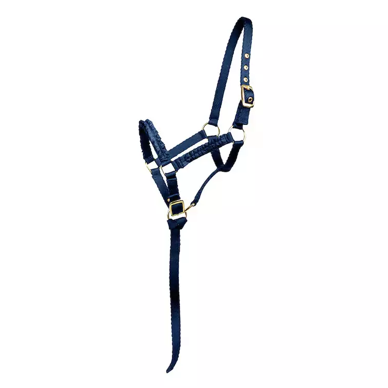 Pehmeä varsariimu, säädettävä turvan ja niskan ympäriltä sopiakseen sekä pienille että isokokoisille varsoille. Koristeelliset röyhelödetaljit, kullanväriset soljet ja irrotettava käytännöllinen riimunnaru pätkä.