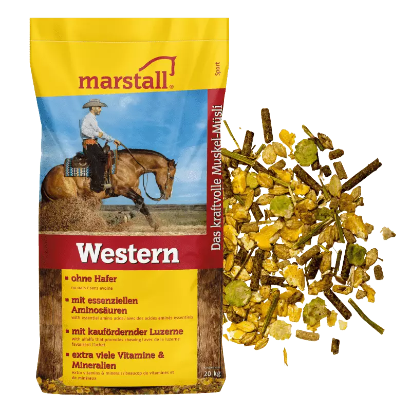 Marstall Western on suunniteltu erityisesti lihaksikkaiden rotujen tarpeisiin lisäämällä välttämättömiä ohutsuolessa sulavia aminohappoja.